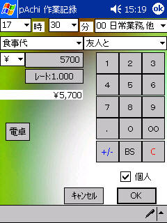 電卓ボタンを押すとPocketPCの電卓が現れます。